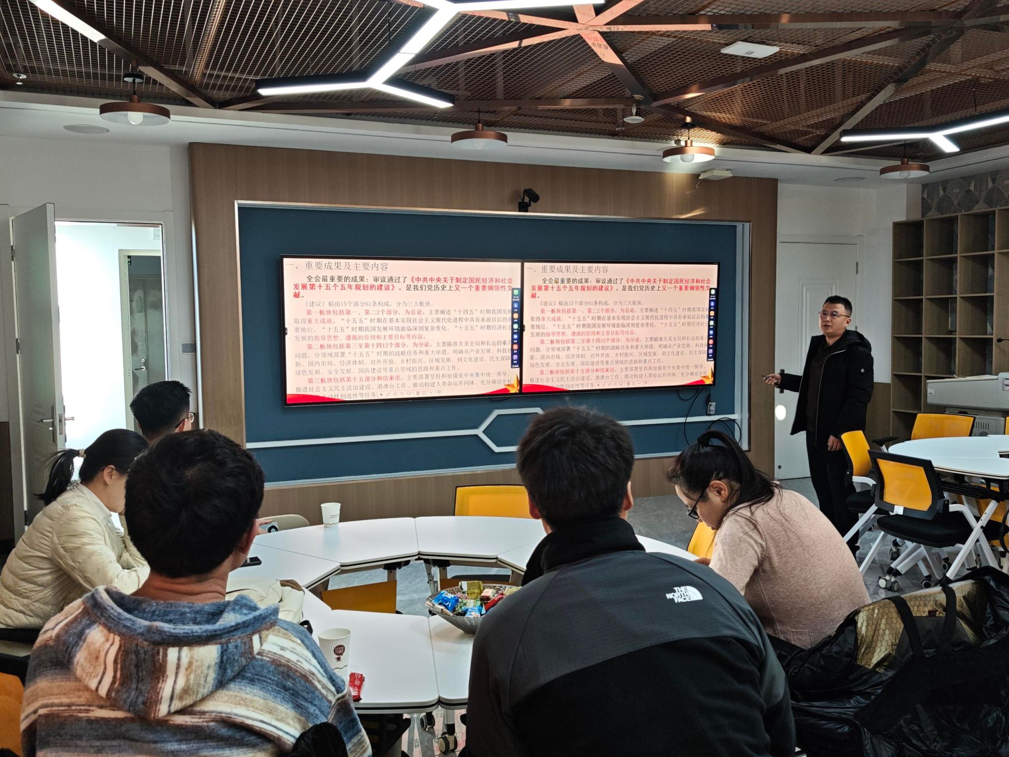闫晓瑞首先系统介绍了党的二十届四中全会重要成果及主要内容,随后围绕《中共中央关于制定国民经济和社会发展第十五个五年规划的建议》中涉及的产业发展、科技创新、国内市场等十余项战略任务及工作思路进行了简要说明。