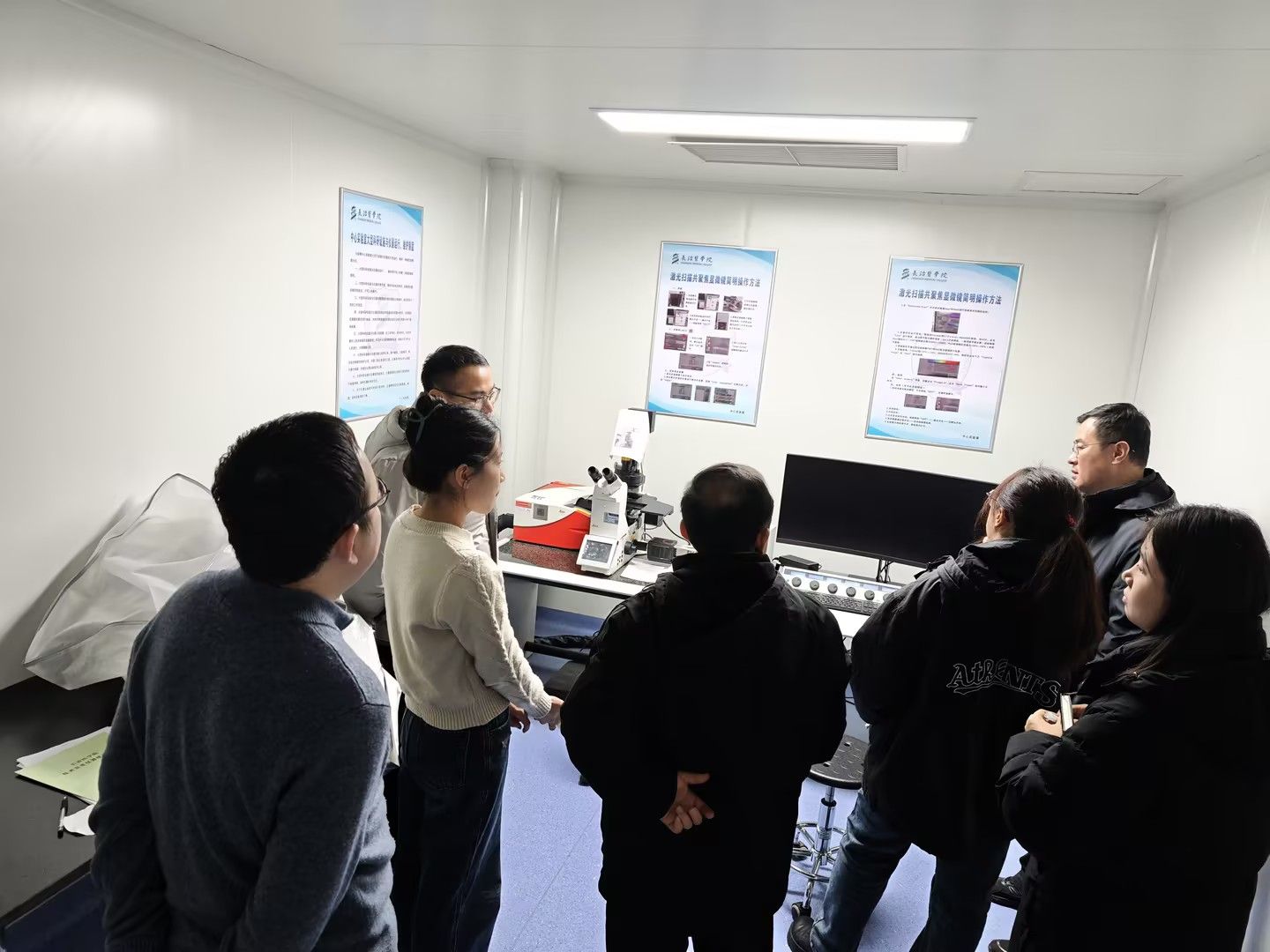 理论讲解结束后,大家意犹未尽。在冯岩龙的带领下,一行人移步至中心实验室进行实地观摩。冰冷的仪器在眼前变得具体可感:大家围拢在设备旁,仔细察看构造,就具体操作、样品制备、数据解读等问题进行热烈探讨。亲手触摸、亲眼观察、即时问答,让原本抽象的技术知识变得鲜活而深刻。